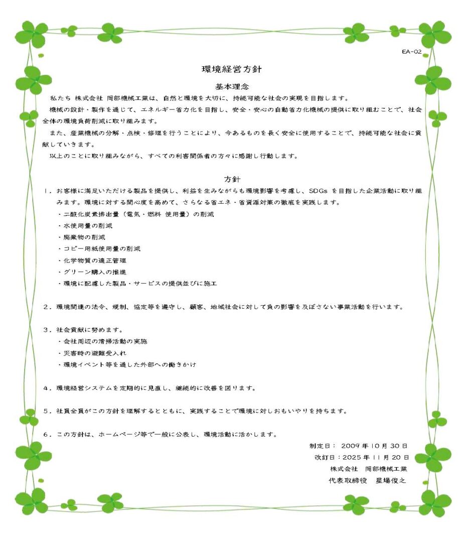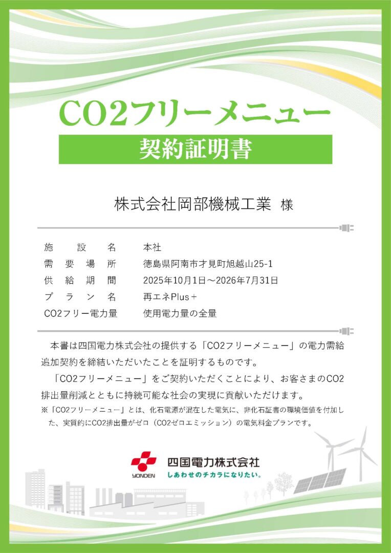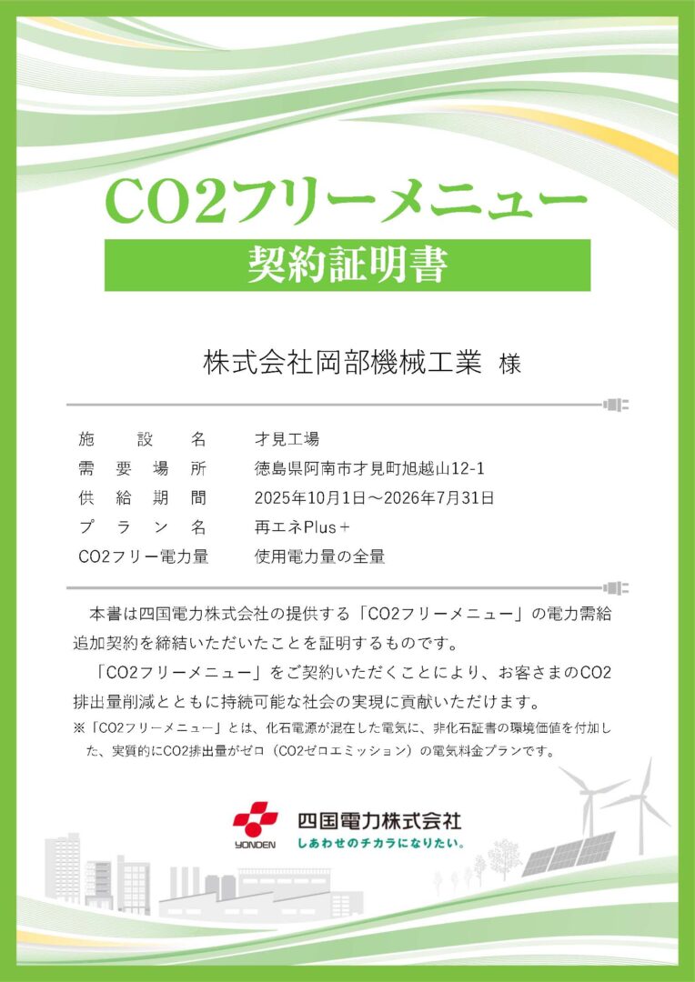 株式会社岡部機械工業は、これからも一丸となって温室効果ガス削減に
