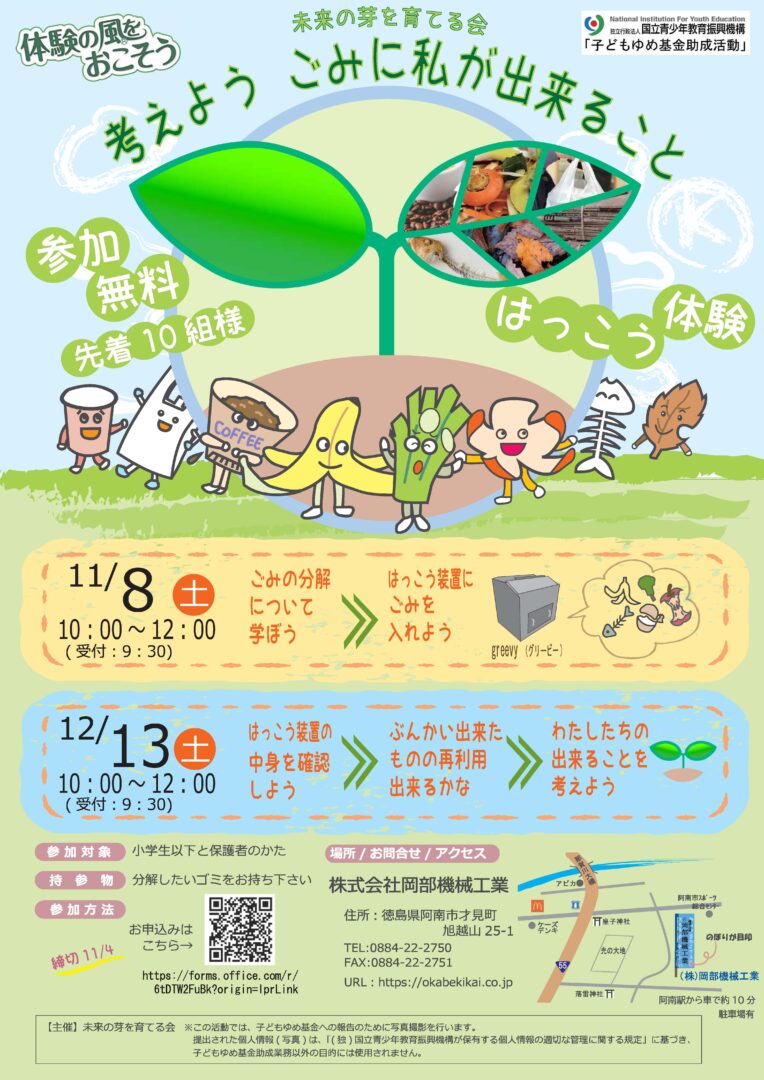 学生とその保護者を対象に、「考えよう ごみに私が出来ること」という環境意識を高めるイベントを開催しました。二日間にわたり、家庭から持ち寄ったごみを使用し、発酵装置での発酵分解体験を通じて、廃棄物の新たな価値を見出しました。